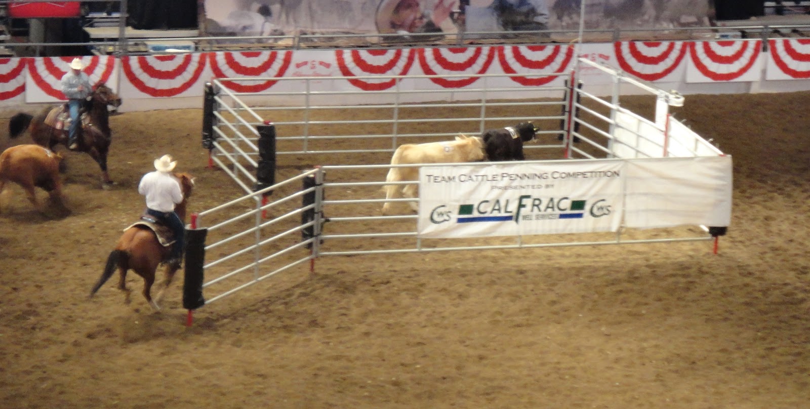 visiting an indoor arena where there is a cattle-penning competition going on. Amateur